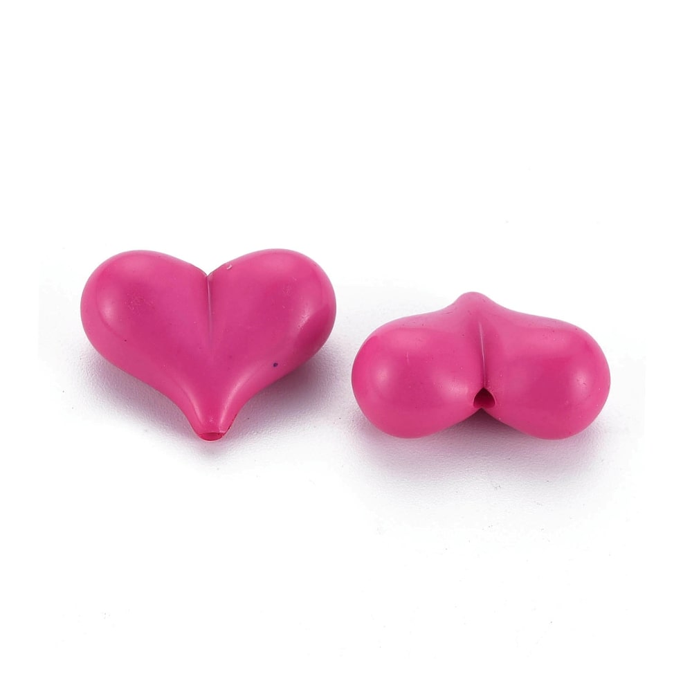 (per stuk) Acryl kralen hart groot roze - 17x22mm