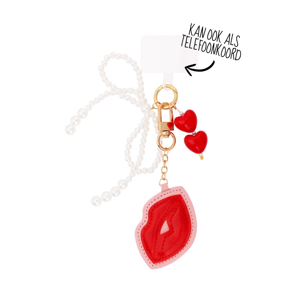 (per stuk) Bag charm kisses rood - 8x19cm