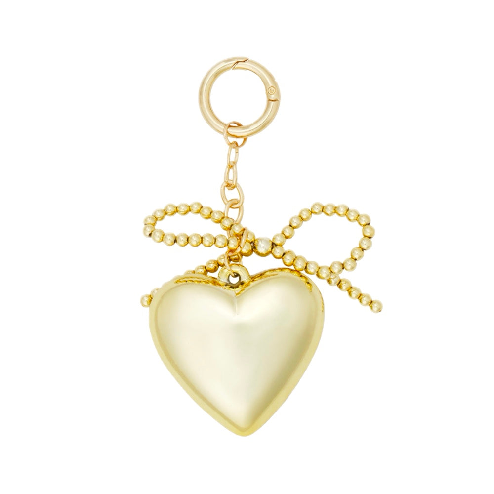 (per stuk) Bag charm strik met hart goud - 11x5,5cm