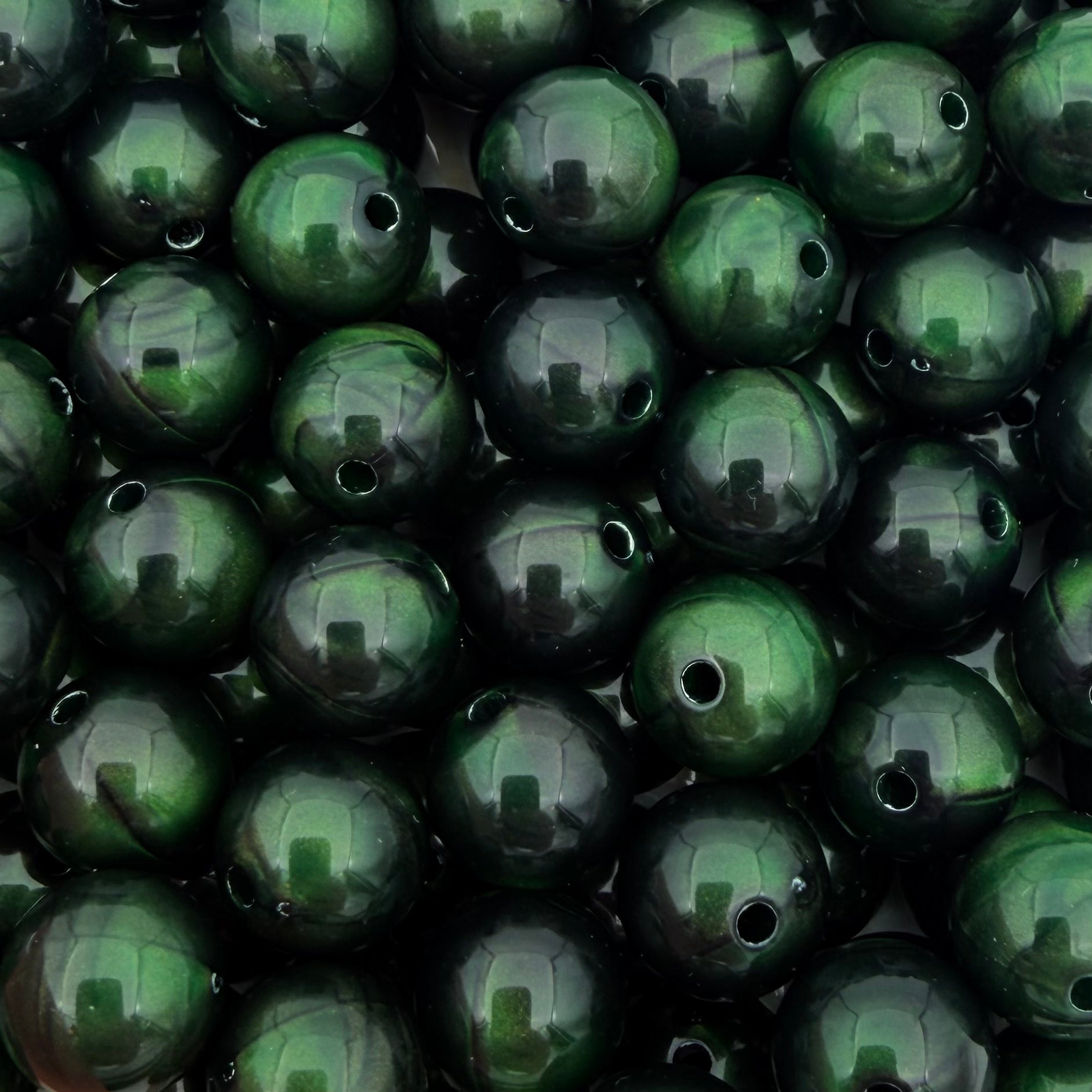 (per stuk) Grote ronde cat eye acryl kralen donkergroen - 12mm