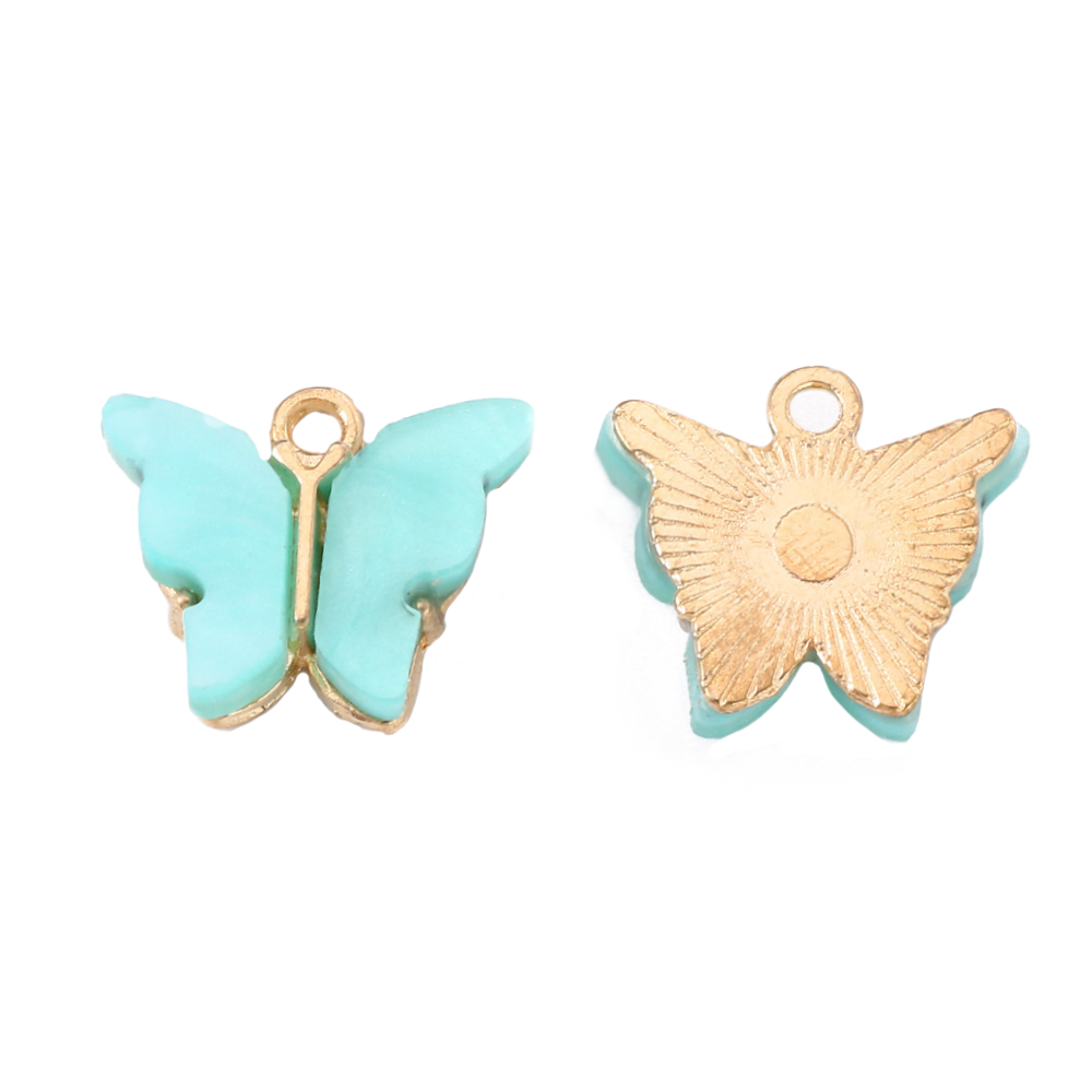 (per stuk) Licht blauwe Vlinder bedel - 14x16,5mm