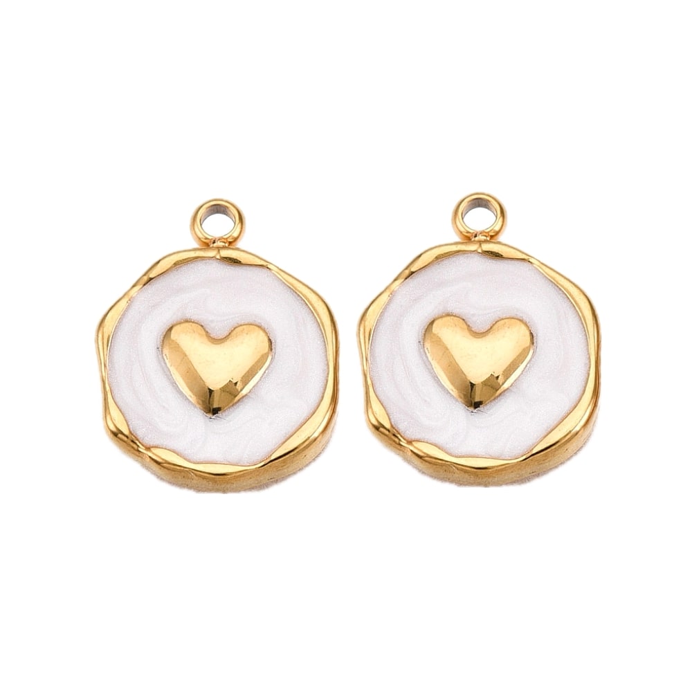 (per stuk) Roestvrij stalen (RVS) hart stempel bedel goud wit - 16x12,5mm