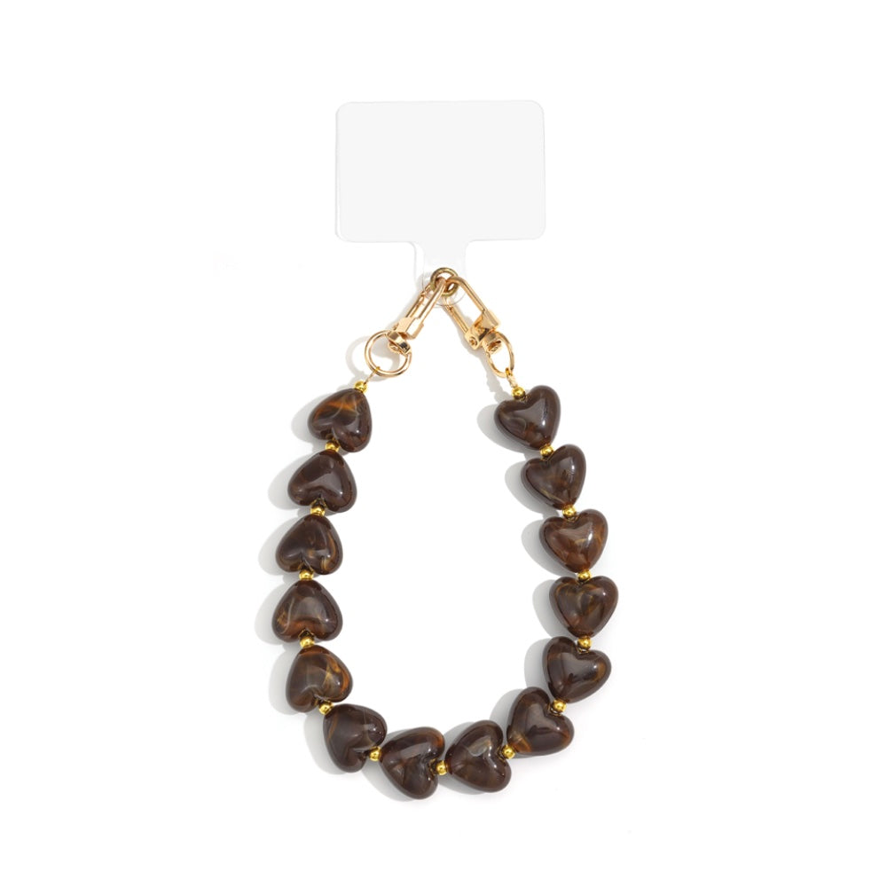 (per stuk) Telefoonkoord natuursteenlook hartjes donkerbruin