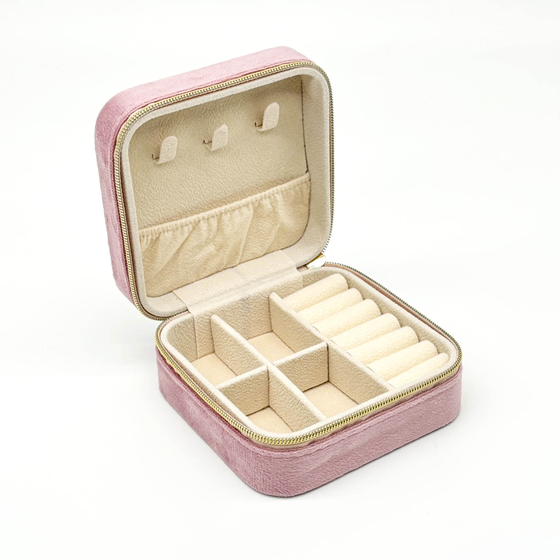 (per stuk) Velvet sieraden opbergdoosje roze - 10x10x5 cm
